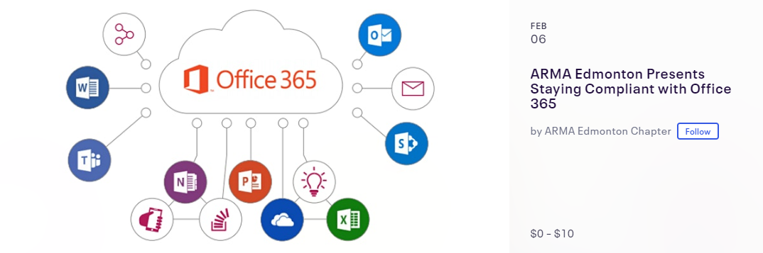 Join us Thursday February 6th for a look at how to ensure compliance and productivity from the Office 365 products that you’re already paying for. This is a webinar which is FREE for ARMA Edmonton members, be sure register today!